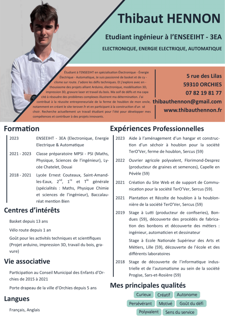 About me Projects Contact Social Network Contact Details 5 rue des lilas, Orchies, France +33 7 82 19 81 77 thibauthennon@gmail.com Resume French Resume English Resume My 3 Minutes Presentation